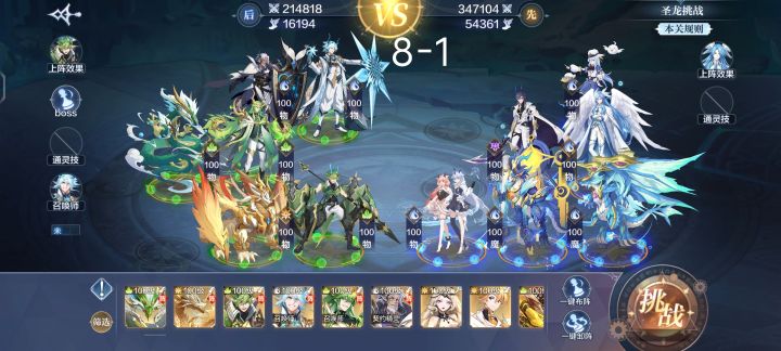 8-1水火龙和梦离都带攻暴气破,绿龙带攻防气生,龙炎和希尼安都是攻暴生防,因为可能要赌一下暴击,回合超过11回合会直接失败。