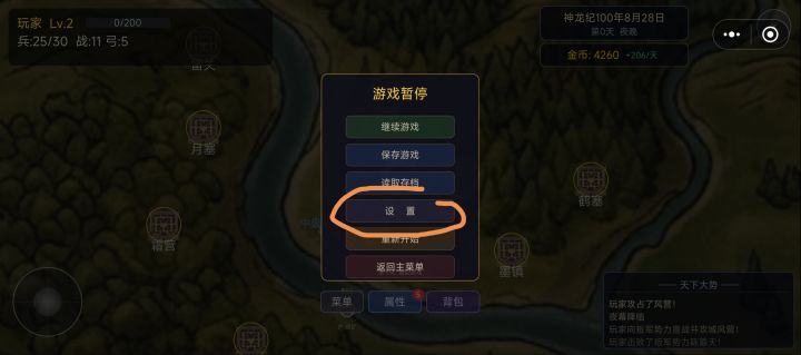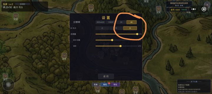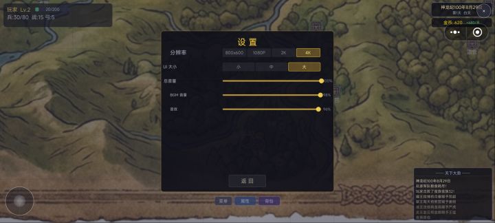 1、输入名字无法开始 答:输入完玩家名字还要按下软键盘回车 (这个已经改了,随后更新会解决这个反人类操作) 2、招募士兵时ui超出屏幕无法点击 答:按图改下分辨率就行 (重新做了招募的UI,下个版本将替换) 3、战败后武将无法攻击 答:因为武器都被敌军收缴了,需要去商店重新购置装备(这个暂时不想改)
