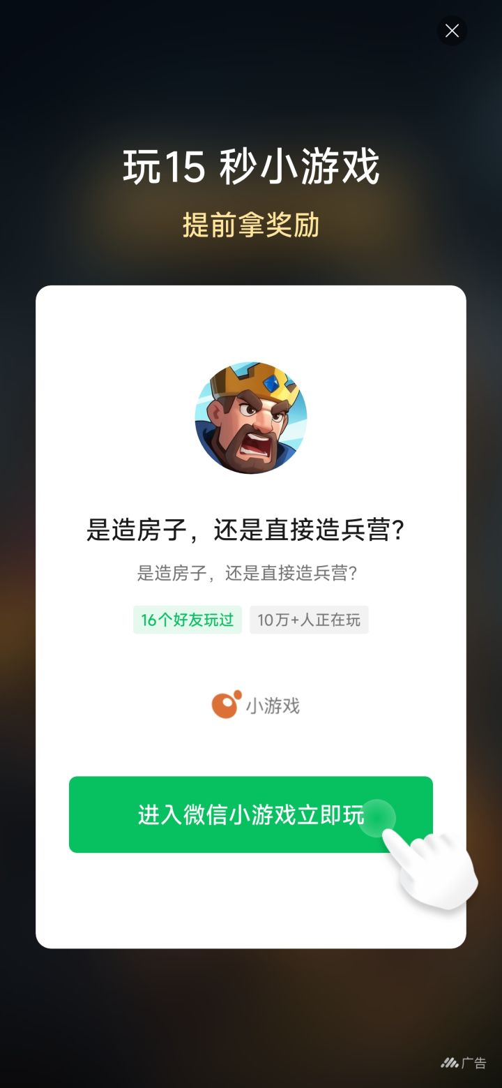 游戏潜力还是挺大的,希望作者能改进一下。前期敌人强度差距太大了,有的时候同一关敌人弓箭刺客很弱,有的时候前排三个野兽召唤师直接给你打崩。导致了同样的阵容总是在不同时候暴毙,不得不看广告。看就看呗,支持下作者也行,但是!他这个广告很坑,我见了有必须点进微信去玩15s的,有体验60s的,受不了。