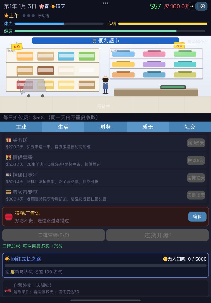 还有建议设施等级提高一些,最高三级有点低,摆摊只能选3种串有点少了,或是把物品类型增多从而把效果增多一些,至于其他成长我都只升到4级目前没发现有蹦的