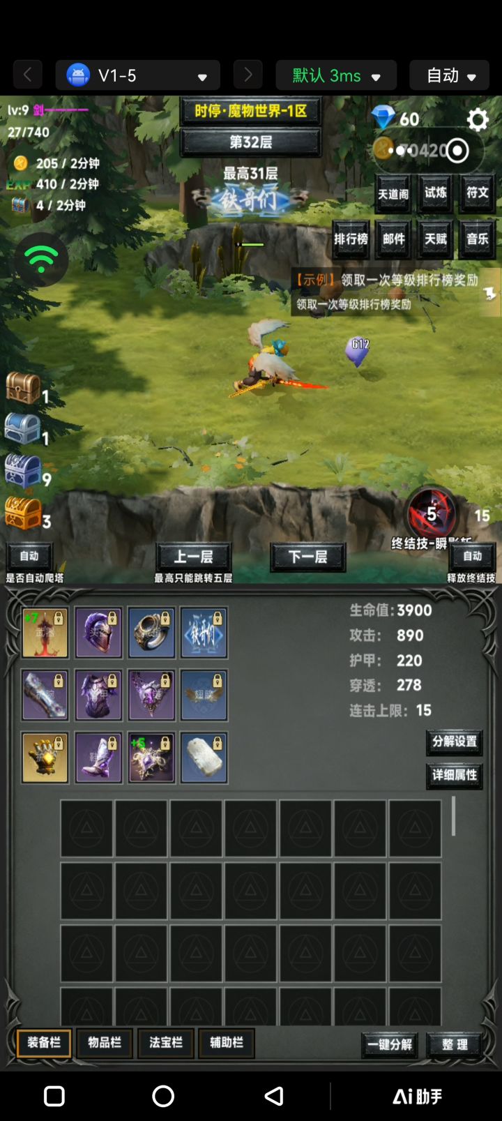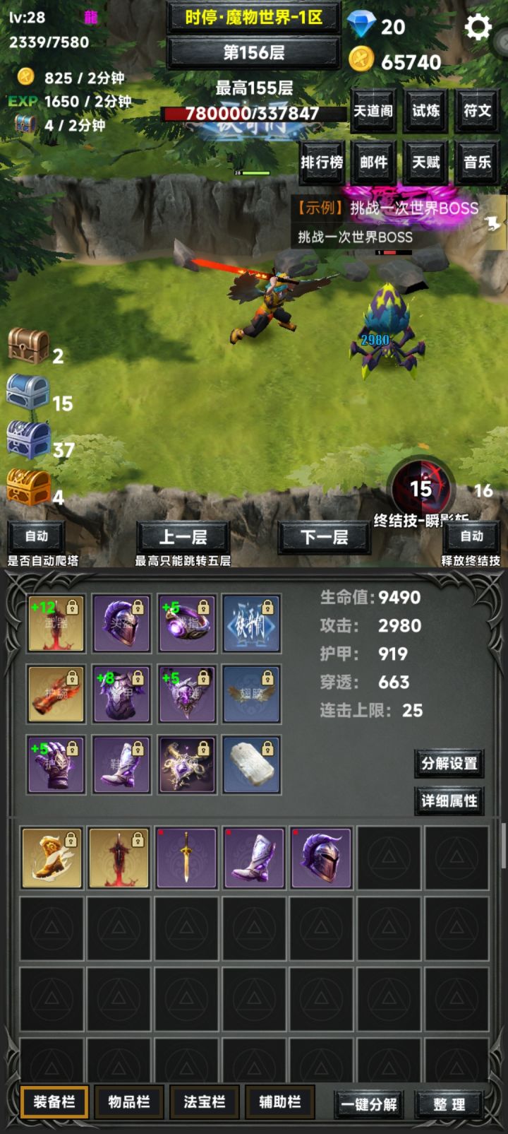 省心挂机游戏,前期金币比较短缺看好装备属性再强化。世界留着晚些再打不用急。前期就尽量推图。可以离线适合摸鱼
