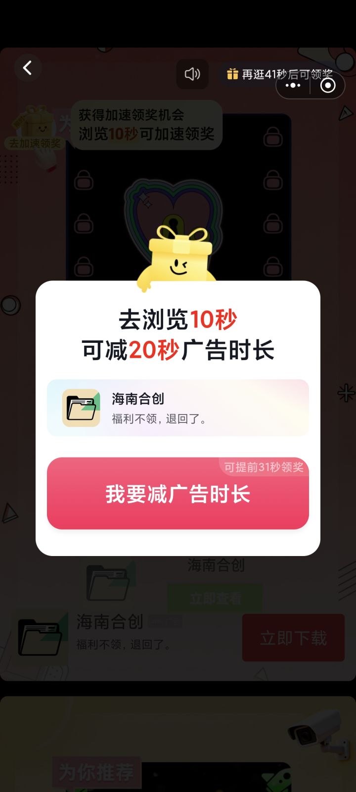 真垃圾,看个四十秒的广告大约五秒钟叫你手动下滑看下一个广告才继续倒计时!