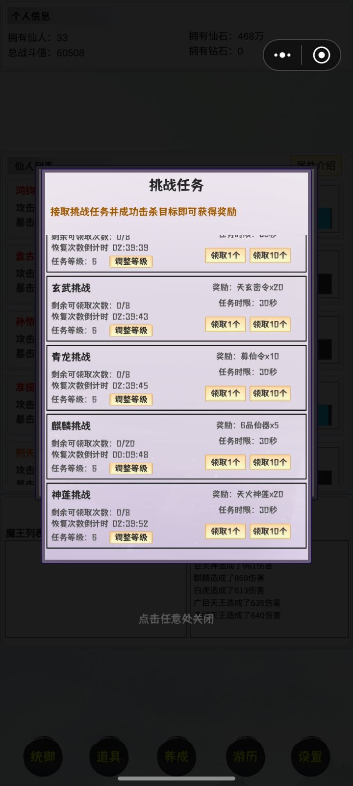 差不多吃透了,游戏很简单,前期资源少,尽量先升级绿色神仙,满1000级开始渡劫,挑战任务一品一品打,战斗界面左下方有进度条,能看你打的怪掉血度,来确定你能不能打得过,打不过不要贪心,次数会浪费