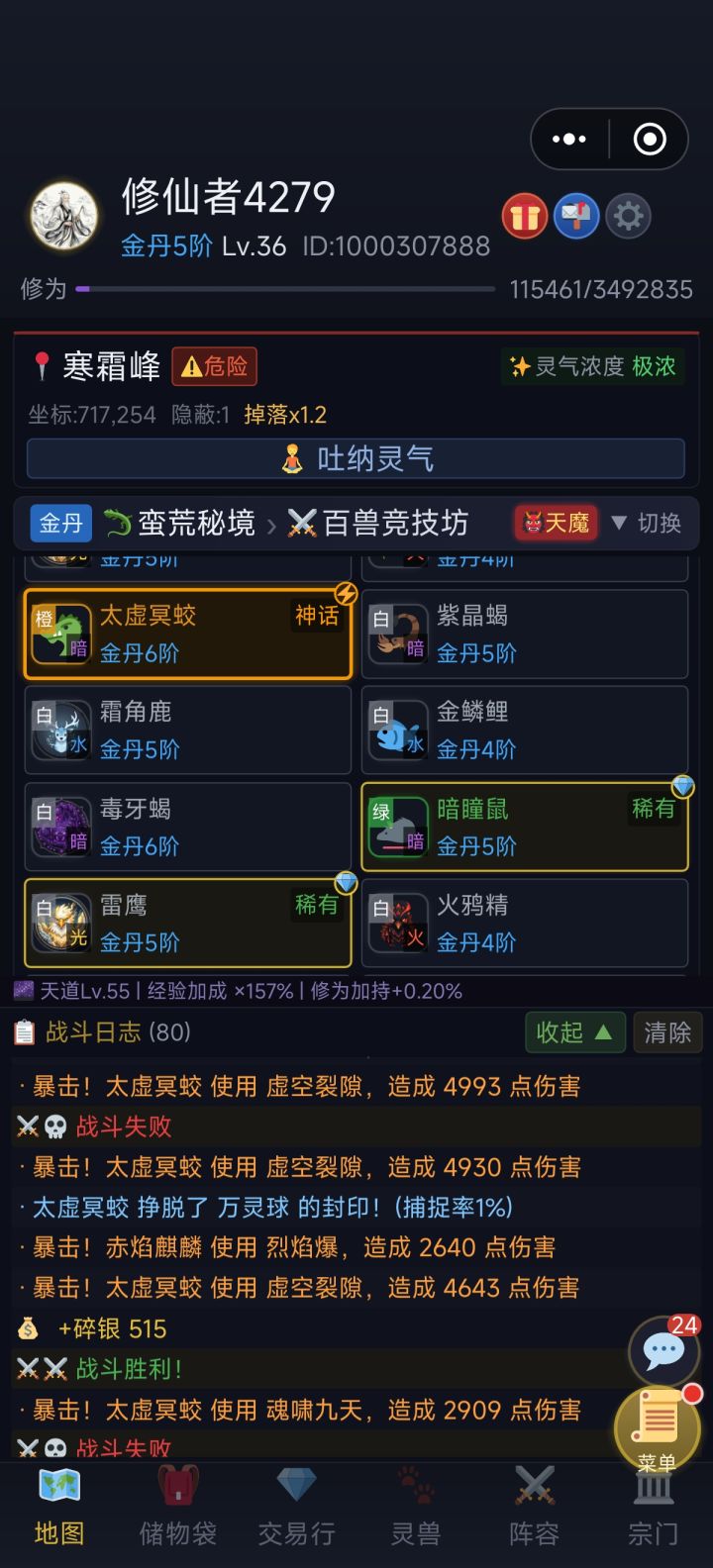 版本预更新:1-修复了点击悬浮按钮闪屏的bug2-新增查看攻略,菜单-新人功能;共计12种详细攻略支持查看3-新增“秘境令牌”,用于下周的秘境多人boos活动,在妖王巢穴boos处掉落4-修复技能书使用后,技能袋不显示的问题5-妖王巢穴概率掉落各种技能书6-妖王巢穴boos上限数量改为10,刷新时间缩短30%7-调整不同品质灵兽面板属性平衡,品质和稀有度的倍率差距太小,,导致低种族基