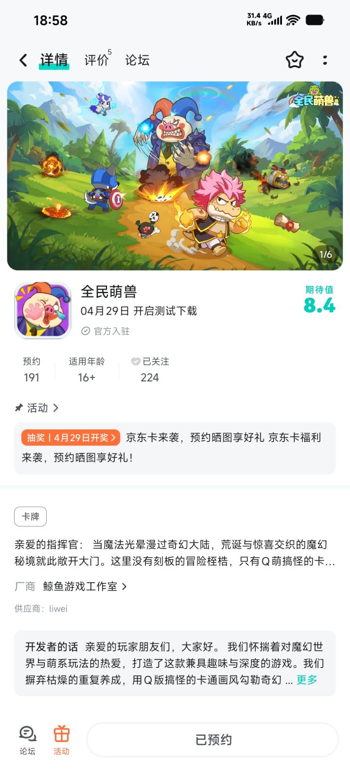 各位玩家伙伴,预约活动开启啦!预约并晒图,附上走心祝福,就有机会赢取京东卡,快来参与吧~【参与方式】1. 在论坛开新帖晒出您的预约截图2. 写下对游戏的祝福或寄语3. 将新帖链接分享到本贴评论区即参与成功【活动奖品】随机抽3位幸运玩家,送出30元京东E卡活动时间2026年4月24日 - 2026年4月29日期待各位的祝福与寄语,幸运儿就是你!💥【注意事项】1.✅本次随机抽取将