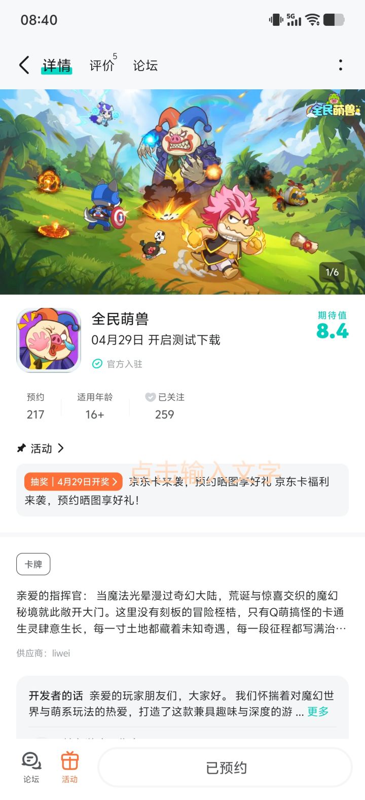 全民萌兽已预约关注