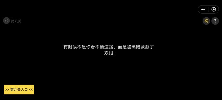 第1关:向右下方滑动,会看到“第2关入口”按钮。第2关:将“困难重重”文字移开,会出现“第3关入口”按钮。(原因:“困难重重”前有空格后无标点符号)(开发者是不是写错字了?我最开始注意到的是“而是被困难的外表锁吓到”中的“锁”,我还以为是要在文字中找到开锁的“钥匙”呢。“锁”是“所”吧,还是说有什么特别的含义?)第3关:双指将画面缩小,第4关入口按钮在右边。第4关:右上角问号看广告后,点击提