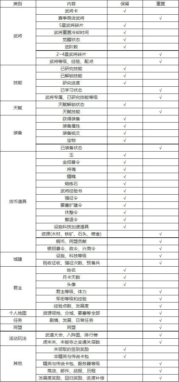 一、奖励规则内容 1至132区S7全新赛季将于2022年11月7日开启,赛季奖励根据君主们以下内容进行结算: (1)国战历赛季君主的个人荣誉排名和所在阵营的排名; (2)内城建筑以及科技等级; (3)武将等级与武将技能等级情况; (4)剩余同盟贡献/储备贡献情况; 根据结算情况奖励各位君主相应威望,可以通过威望在全新赛季的赛季商店内购买各种物品。 奖励发放的方式和时间:开服当日奖励将会通过邮件形式
