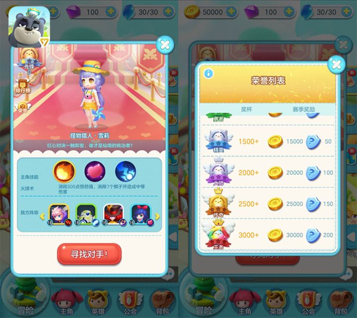 超级英雄一键切换,助力登上王者宝座!《童话萌消团》手游全新战斗玩法“英雄后备队”已经上线,每次战斗最多能够上7名童话英雄,不仅改变了冒险闯关中的战斗方式,在经典的“红心对决”竞技中,更加考验玩家的排兵布阵和消除策略。七位英雄轮番上阵 红心对决一触即发红心对决是《童话萌消团》手游中玩家反响热烈的特色玩法,玩家可以扮演强大的怪物首领,选择特色技能和强力队伍登上王者宝座,收获大量金币与英雄纹章。在全