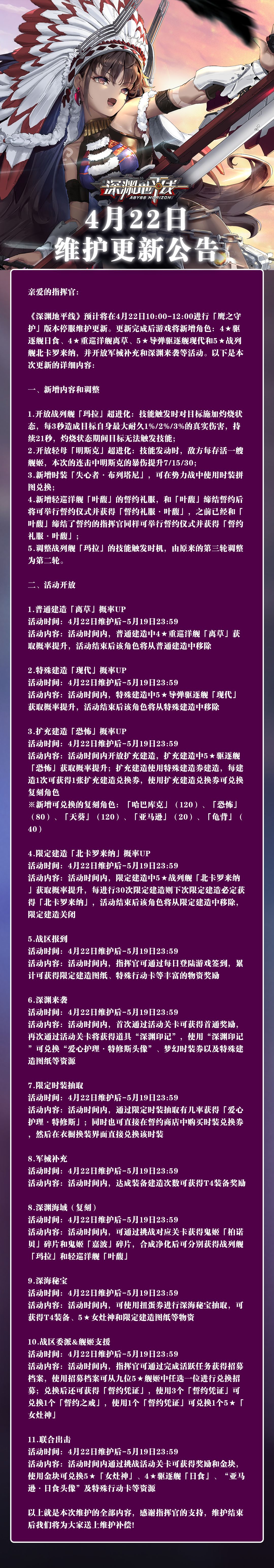 【公告】《深渊地平线》4月22日维护公告
