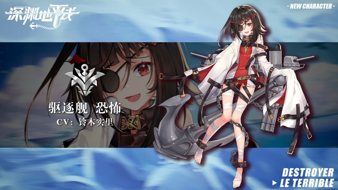 『终于见到你了,我是恐怖。你才是我命中相伴、直到地狱尽头的人不是吗?』 5★驱逐舰「恐怖」将于近期登场,通过特殊建造概率UP获得,活动结束后将从建造池中移除。 ※驱逐舰「恐怖」技能: X色恐惧:我方使用鱼雷攻击命中时触发技能。技能触发后与敌方距离瞬间缩短14%/18%/25%/35%。恐怖作为旗舰时距离额外缩短7%。缩短的距离受增效值加成,最大缩短的距离为90%。此技能每场战斗仅触发一次。