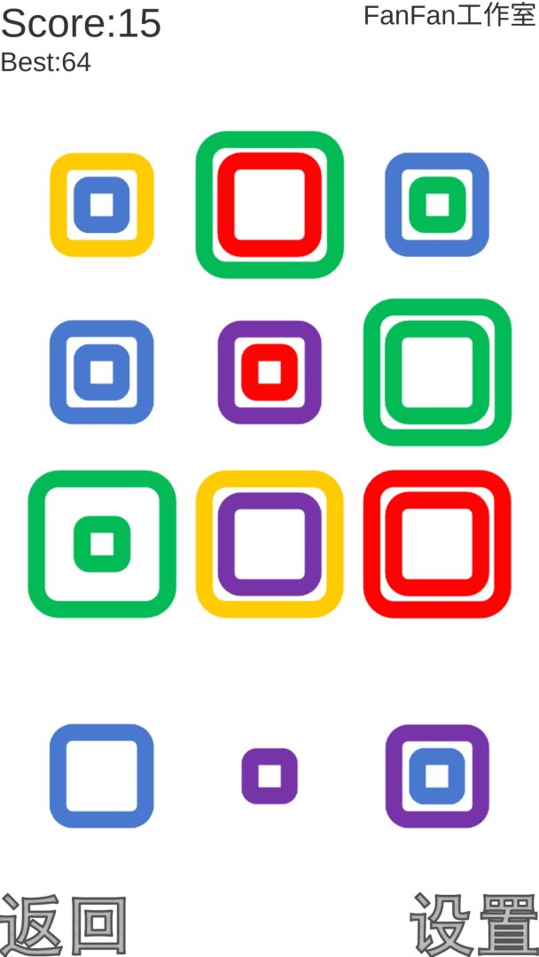 色彩小游戏(ColorMix)是由FanFan工作室开发的第一款游戏app,内包含三个不同种类的小游戏:方块消消乐(益智类),色彩护盾(敏捷类)和最后防御(策略类)。游戏规则简单,随看随懂,图标、字体巨大,不管什么视力都可以轻松玩耍。
