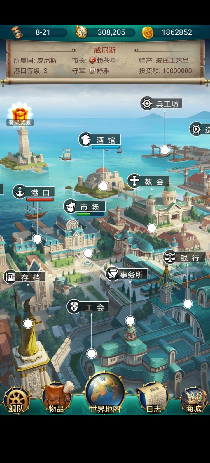 女王号16万开局:卖新手船 材料 旗帜(16万)→帕尔马 珊瑚 那不勒斯卖