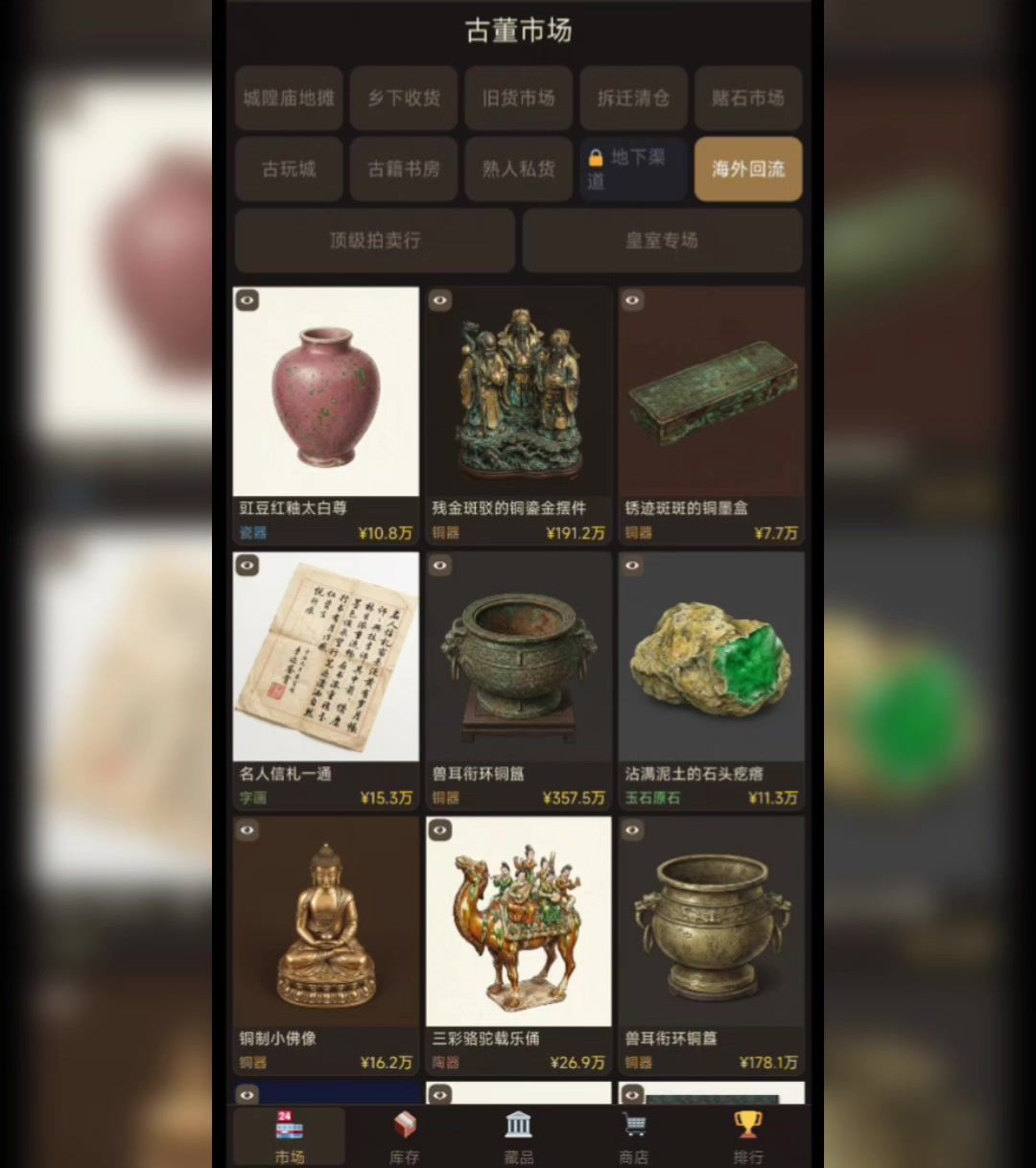 中间陆陆续续的玩了两个小时,结果大概是下午的时候断了一下,到晚上再打开这个存档就是全部鉴定,就是默认失败一样,它就是点进去,然后再过一会儿,它就直接是失败,它也不攒进度条了,点进去就是失败,完了卡出一个空白界面,当你闪回去的时候,你就会发现你的东西,不管真的假的,都是零元了,相当于我这么多库存,全部都要免费了