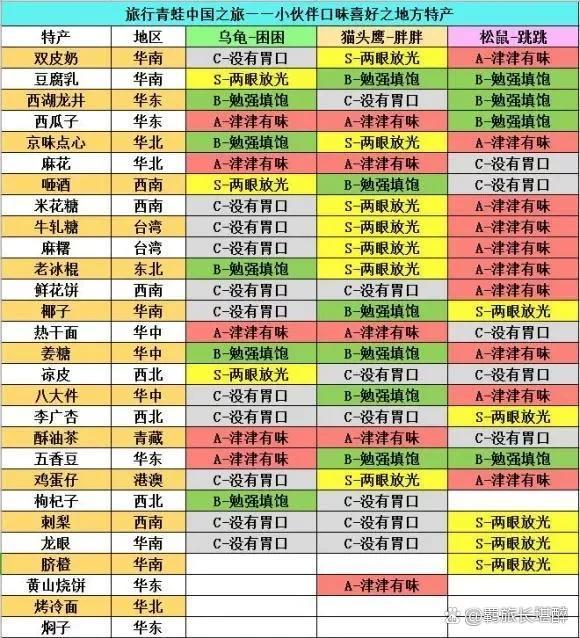 数字越大随机到的概率越小!! 是整合之后的表格,会有些乱… 给那些想去某个目的地的宝子们分享一下 (在此感谢酸菜鱼0509、羽兮虞兮) 去远点的目的地千万别搭配华夫饼、可丽饼、皮塔饼、花生之类的可能无法到达终点的食物 其实去哪一个目的地本身就是一个随机性较大的事情,所以宝子们还是放宽心啦,佛系点