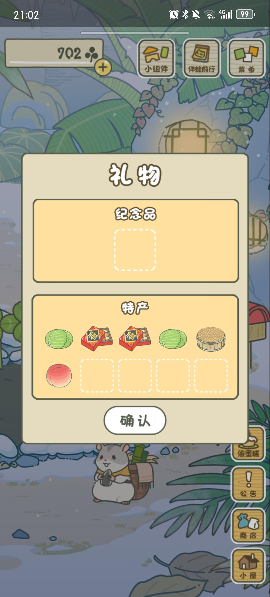 大安崽早上做家具后下午就出门旅行了,三个蛙崽的材料都看到bug了#旅行青蛙中国之旅 #旅行青蛙中国之旅制作组