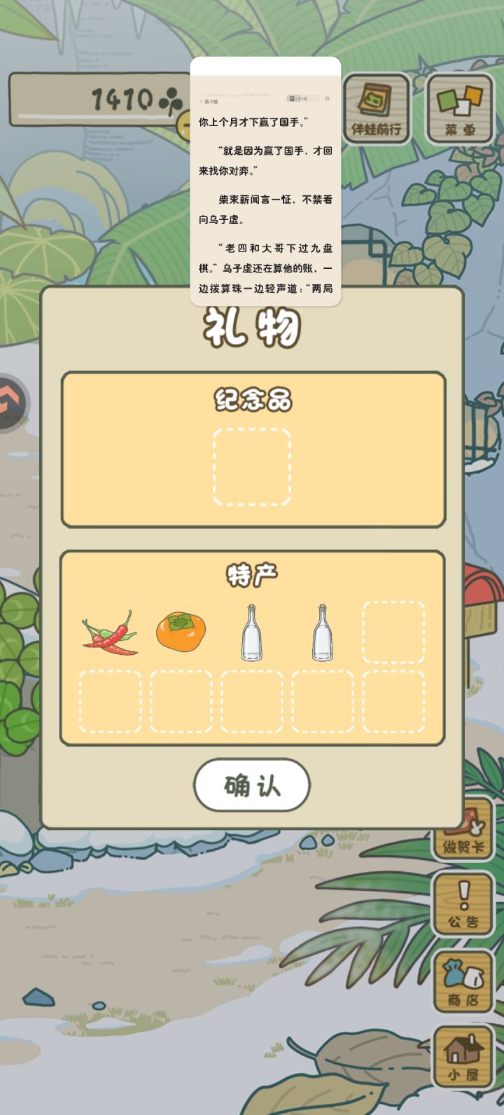 这只蛙叫墨赴远,寓意是别走太远。我看见她,脑海里总想起“关爱空巢老人,别让等待成为遗憾”😜#旅行青蛙中国之旅 #游戏推荐 #游戏日常