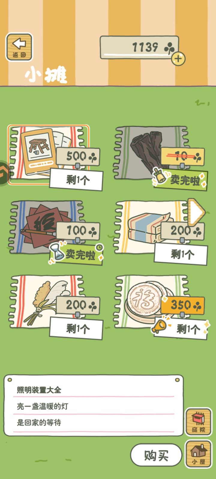 1★~5★为稀有度,★越高越稀有(难刷≠好用)所有判定稀有度的仅个人观点和数据1.免费材料★★是一些小玩意,如普通材料、朽木、杂草等如果广告没有bug或不嫌麻烦建议去获取2.家具制作图纸★★只要没有相关制作图纸嘟嘟就会一直带过来,一个500草,一共27个,总计13500草建议中前期购买3.实用工具★★★一个750草,一共5个,总计3750草,有时候会很经常刷,有时候却没有实用