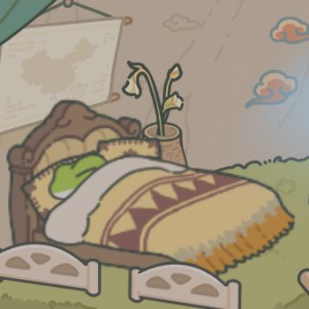 蛙崽好久没有回家睡觉了,睡得真香#旅行青蛙中国之旅