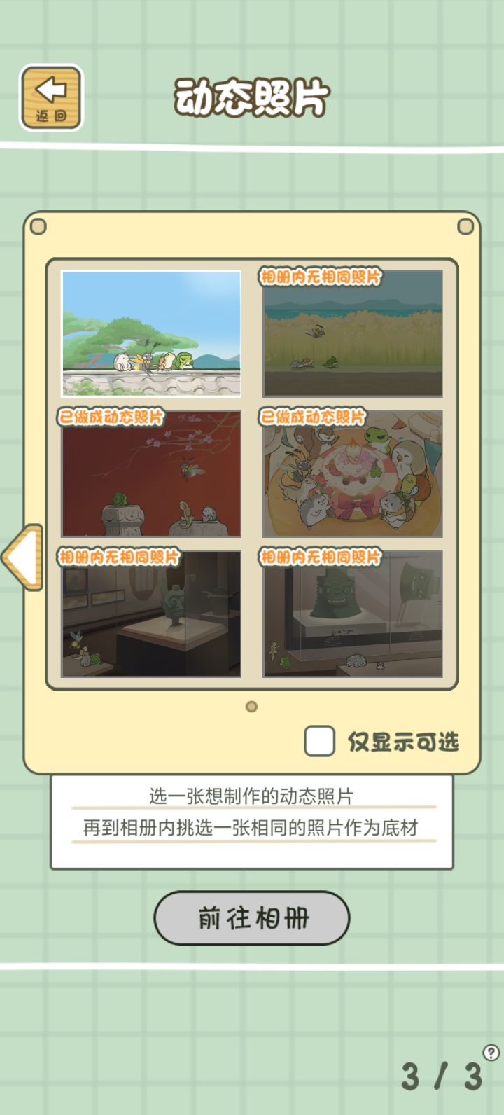 亲测,不用显影液需要22张照片,1张底图,1张背景,然后就是四个小动物各要五5张。之前攒了25张,现在还剩3张。#旅行青蛙中国之旅