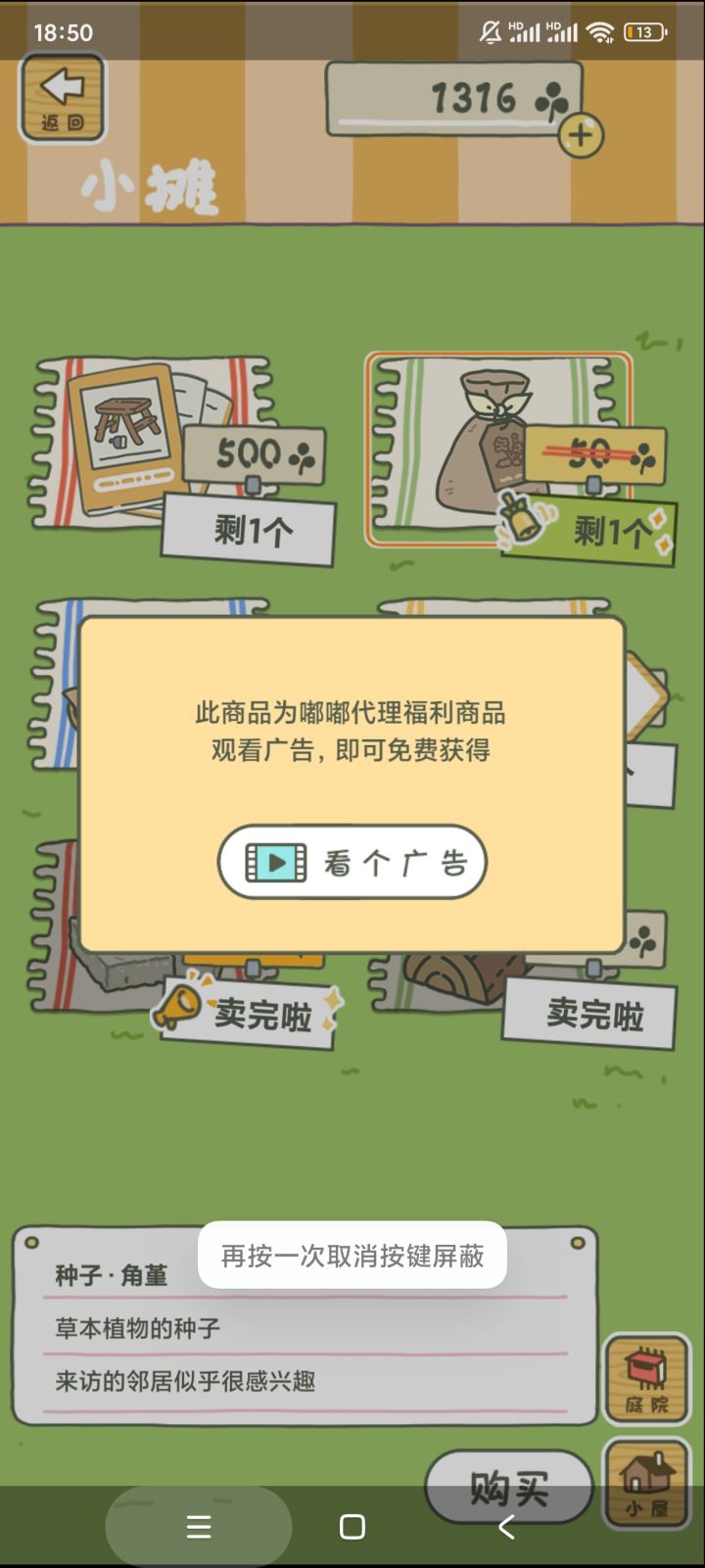 如题,旅行商人那里有看广告免费获得的商品,但是每次看完广告却没法获得商品,一直显示重新连接,一个广告40多秒,反复看几次都没用,浪费人时间!!