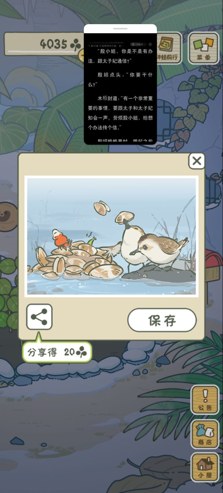 ٩(◦`꒳´◦)۶还有两朵粉色的蝴蝶花!#旅行青蛙中国之旅
