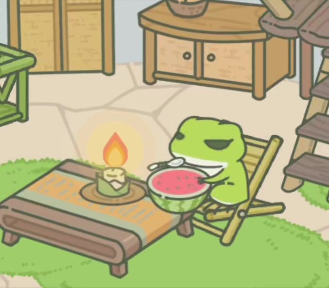 可爱的小鼻嘎也吃上西瓜🍉啦~#旅行青蛙中国之旅 #游戏日常 #旅行青蛙中国之旅