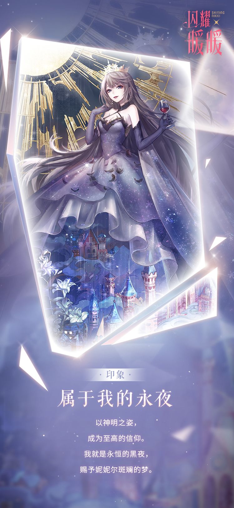 永夜降临,黑暗为她加冕。 莉莉斯的光辉笼罩着妮妮尔,书写着永恒的童话。 这是印象「属于我的永夜」所展现的内心世界,这份绽放于夜色中的美,你感受到了吗?