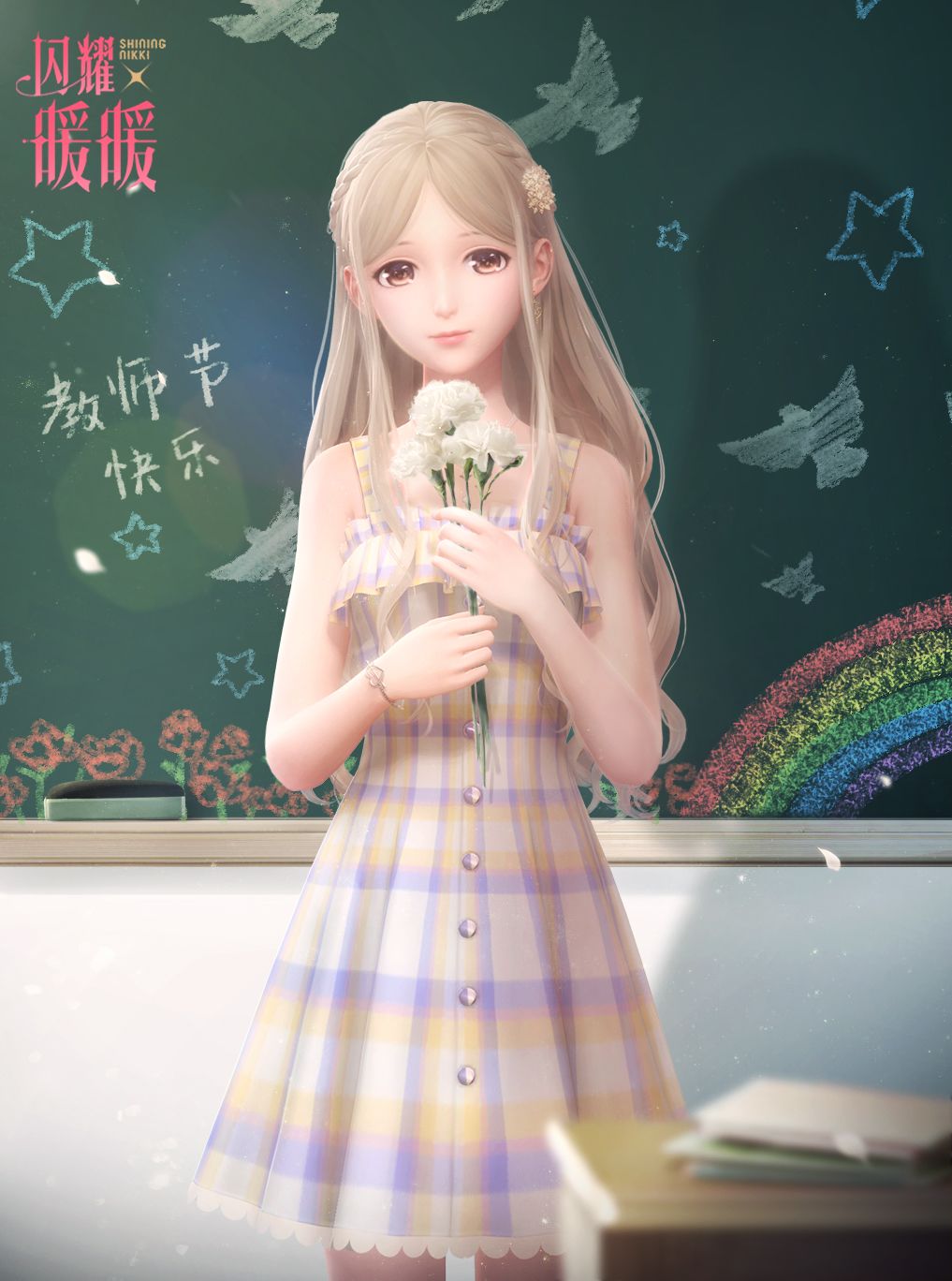 “这个花吗?是白色康乃馨,它的花语是真挚的感情,想送给老师的。嘘……不要被老师发现了,一会记得一起说‘教师节快乐’哦~”