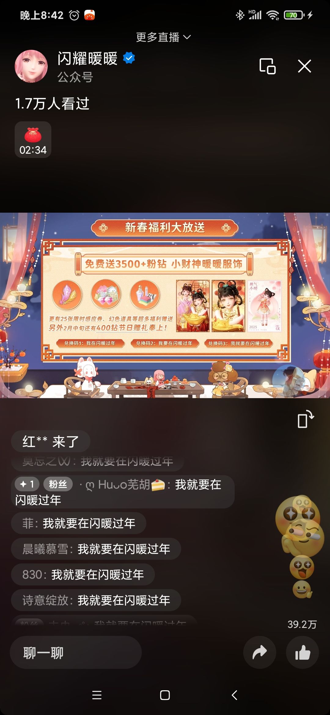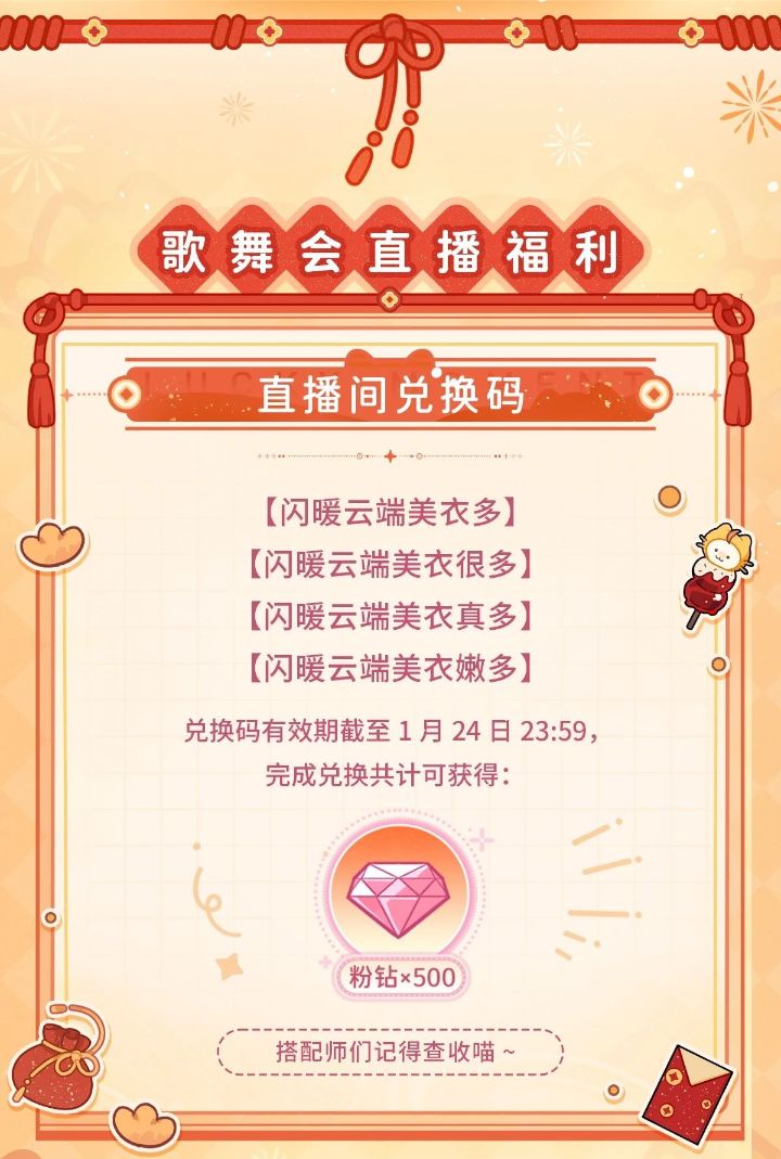 闪耀暖暖新春直播兑换码