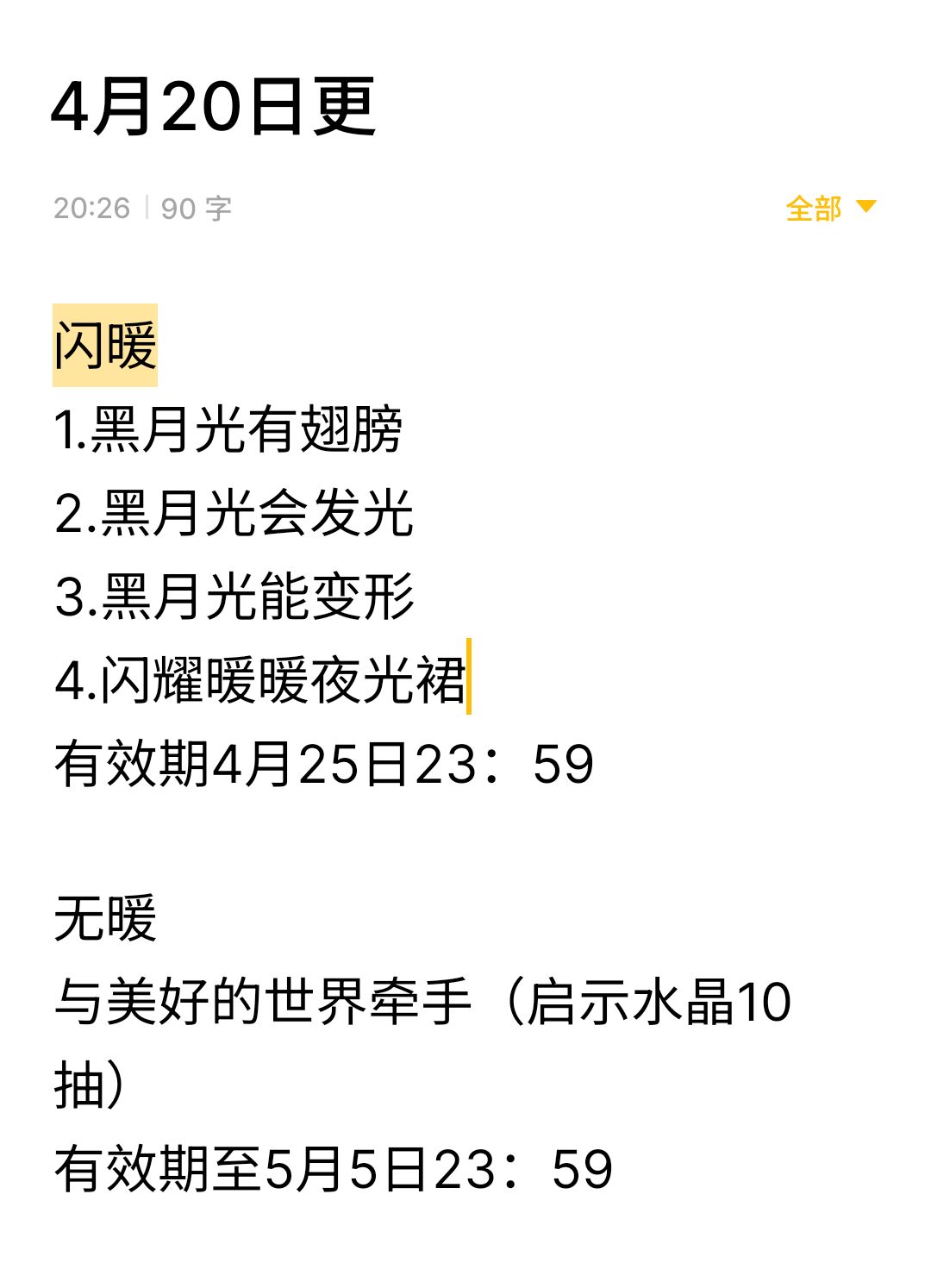 闪暖+无暖兑换码总结(4月3日更双暖)