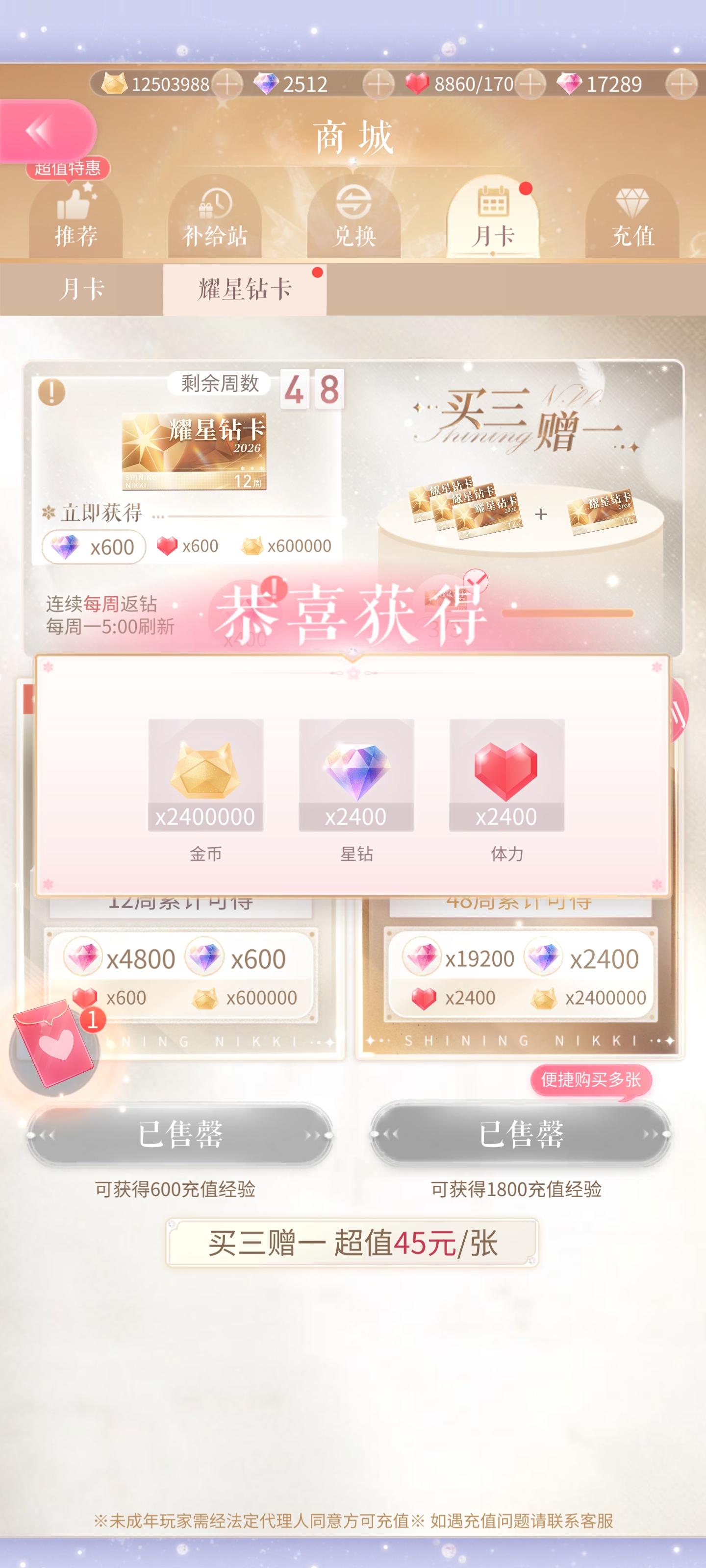 50就拿完第一套,第二套明显就吃钻石了暖暖宝宝又有新衣服穿了