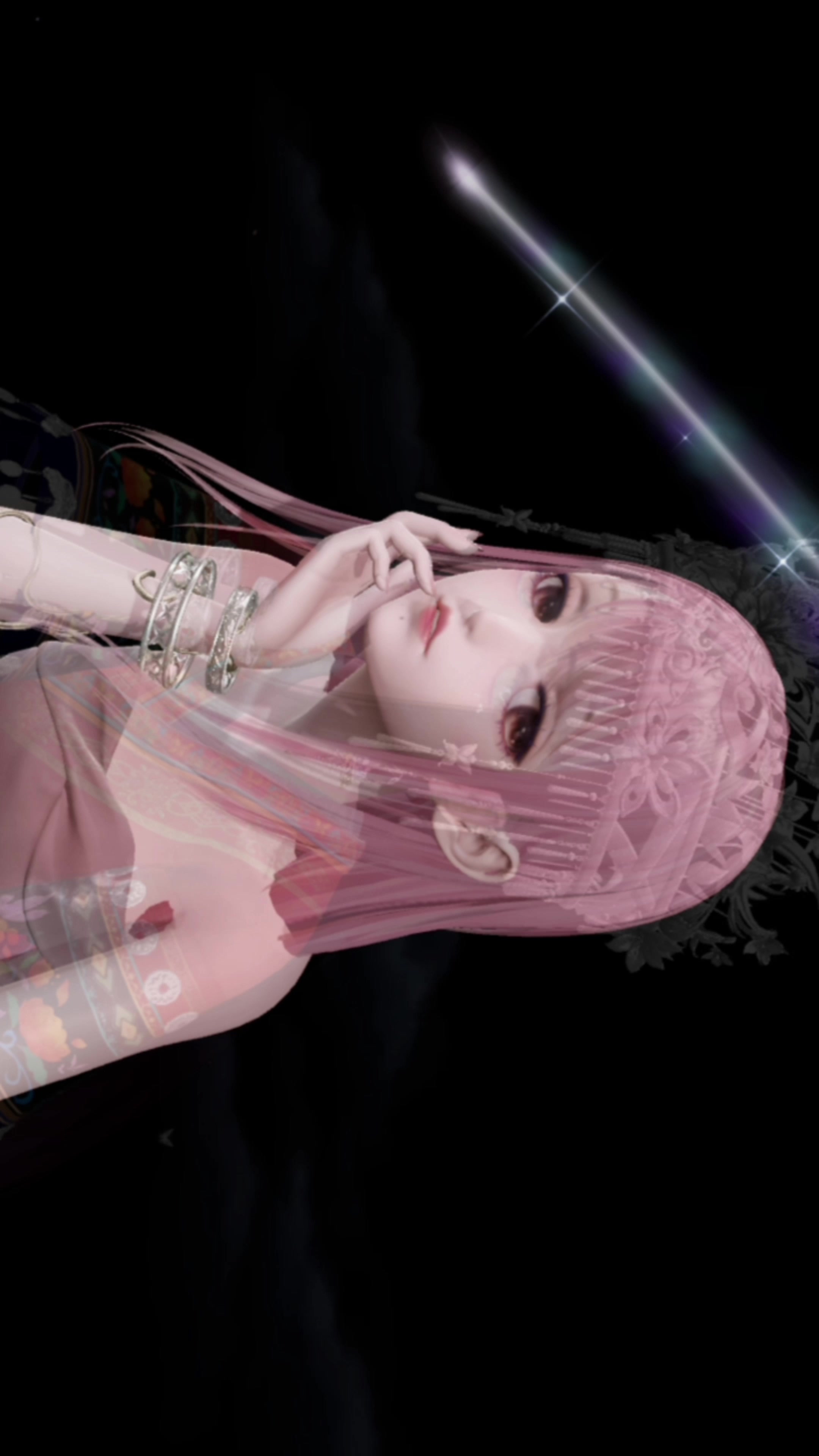 每过一段时间,上线就要重新加载。一开始把自带光照给改了,加上了一堆虹光,实在是花里胡哨的难看。我只好换回老十七手持打光。今天的更新,好像是多了裙摆的粒子效果。看来狗叠内部是真的喜欢这条裙子!