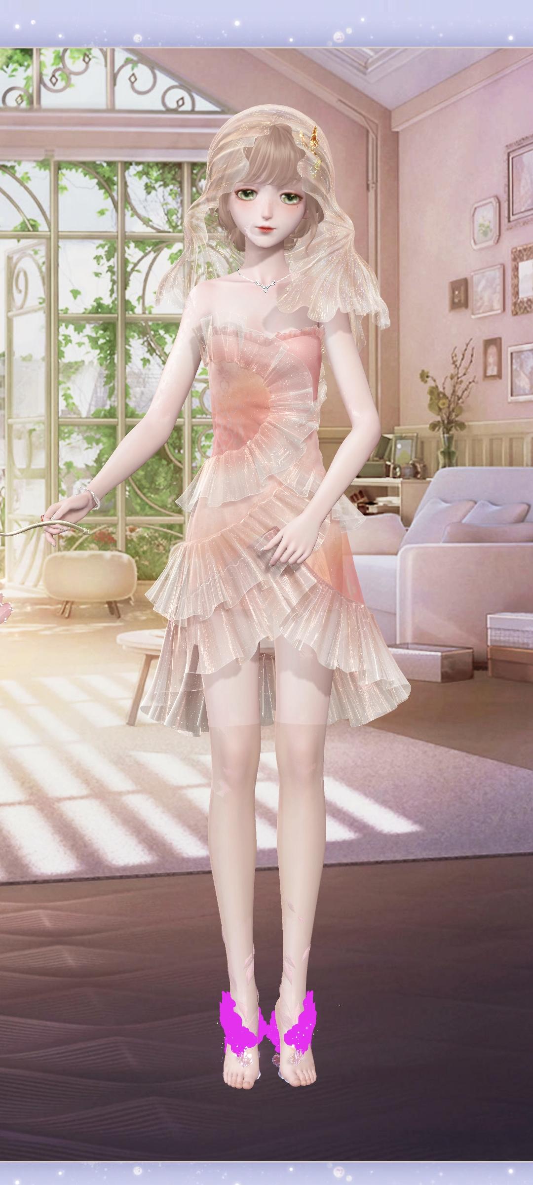 这这个鞋子我平常看的时候也没有问题,结果我今天打开游戏,一直卡bug。我来来回回进退了4,5次回到主界面啥都没有,而且暖暖大腿上还有一条分割线,那个好像还是鞋子的bug
