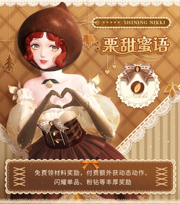 把栗子戴在头上,是不是就能灵机一动啦~8月16日更新后,【栗甜蜜语】活动开启,每日登录即可领取好礼,开启【专属赠礼】还可额外获取全新闪耀单品、动态动作、粉钻等丰厚奖励!⭐【专属赠礼】开启时间:8月16日更新后-8月27日23:59⭐活动及领奖时间:8月16日更新后-9月1日23:59⭐活动介绍:1.活动期间,累计登录6日,即可领幻之券、映花材料、培养材料等【基础赠礼】;2.开启【专属赠