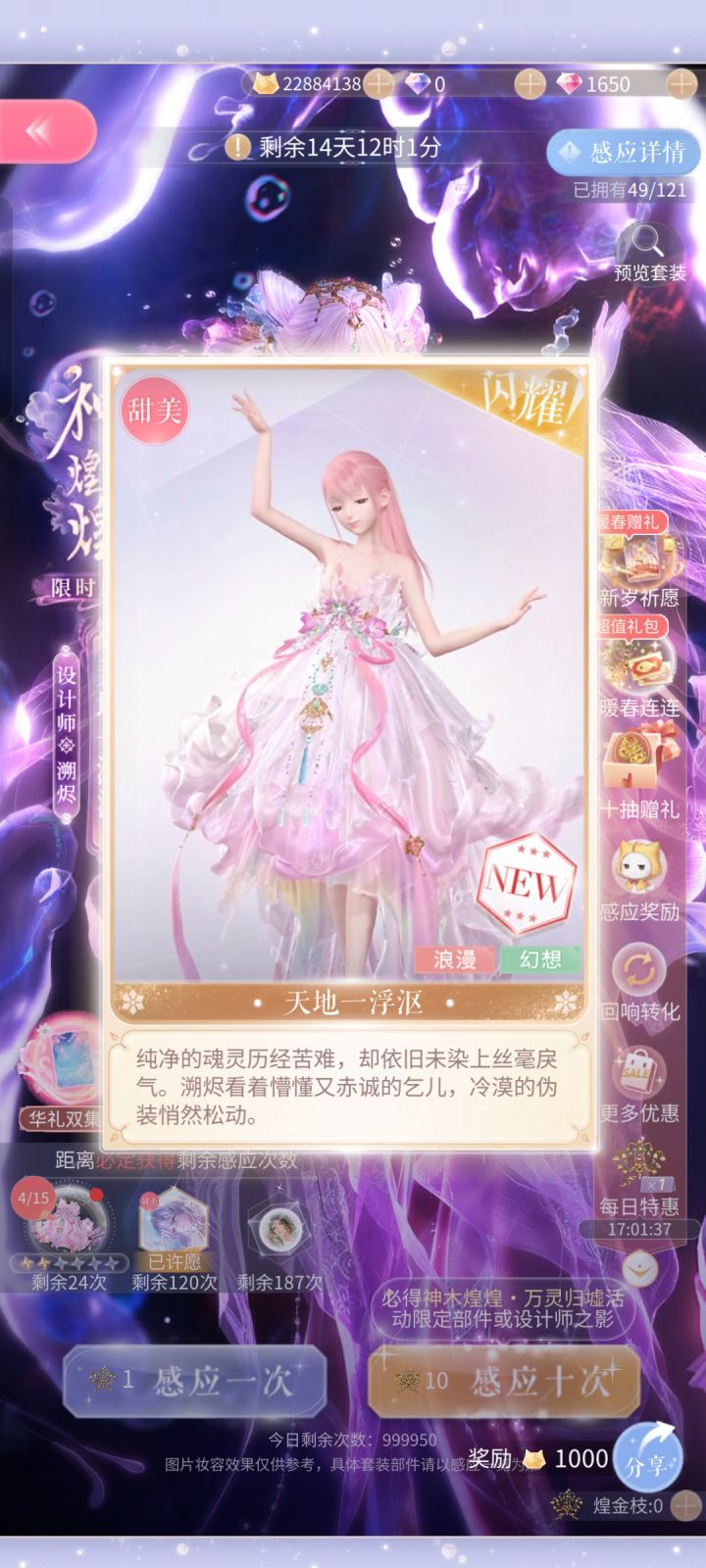 煌煌永恒,须臾成烬。归墟长寂,铜铃三响振寒夜;引渡执念,心火一息入树心。朝生暮死皆心愿,霓虹萤彩归时现。白虹一瞬,执念解、天地见。2月11日更新后,新年主题活动【神木煌煌,万灵归墟】限时开启!版本福利升级,参与游戏内&外活动可免费获取【3500+粉钻、限时感应券×25、闪耀套装手饰部件、2套非凡服饰、免费3D写真置景】及【额外感应奖励】等丰富奖励,助你畅游仙路!【活动方式】关注《闪耀