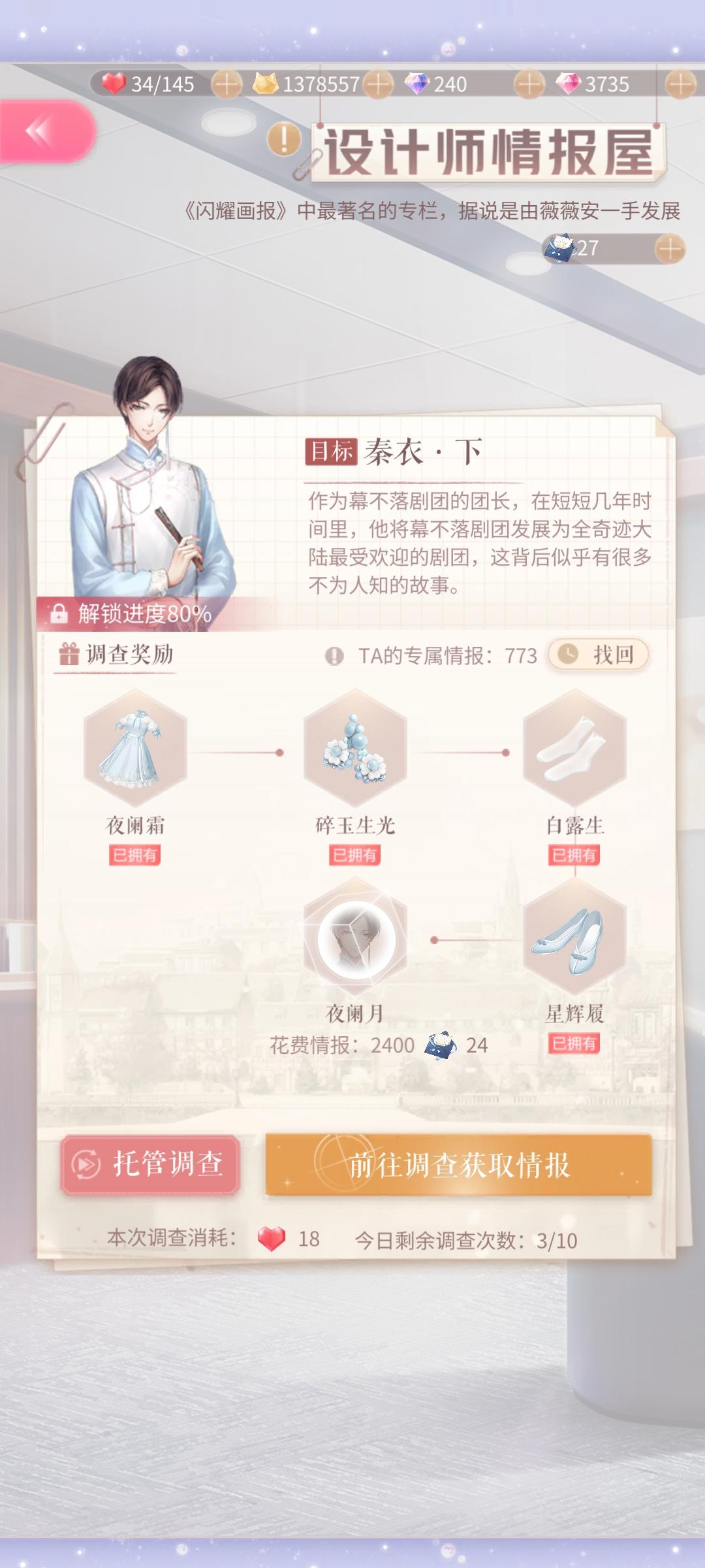 p1:要拿体力都换了吗?p2:设计师情报屋要死磕这个设计师吗?还是做后面的探索拿衣服(这个调查5-6次吧还没完成)p3-6:前期主线很卡过不去很痛苦。
