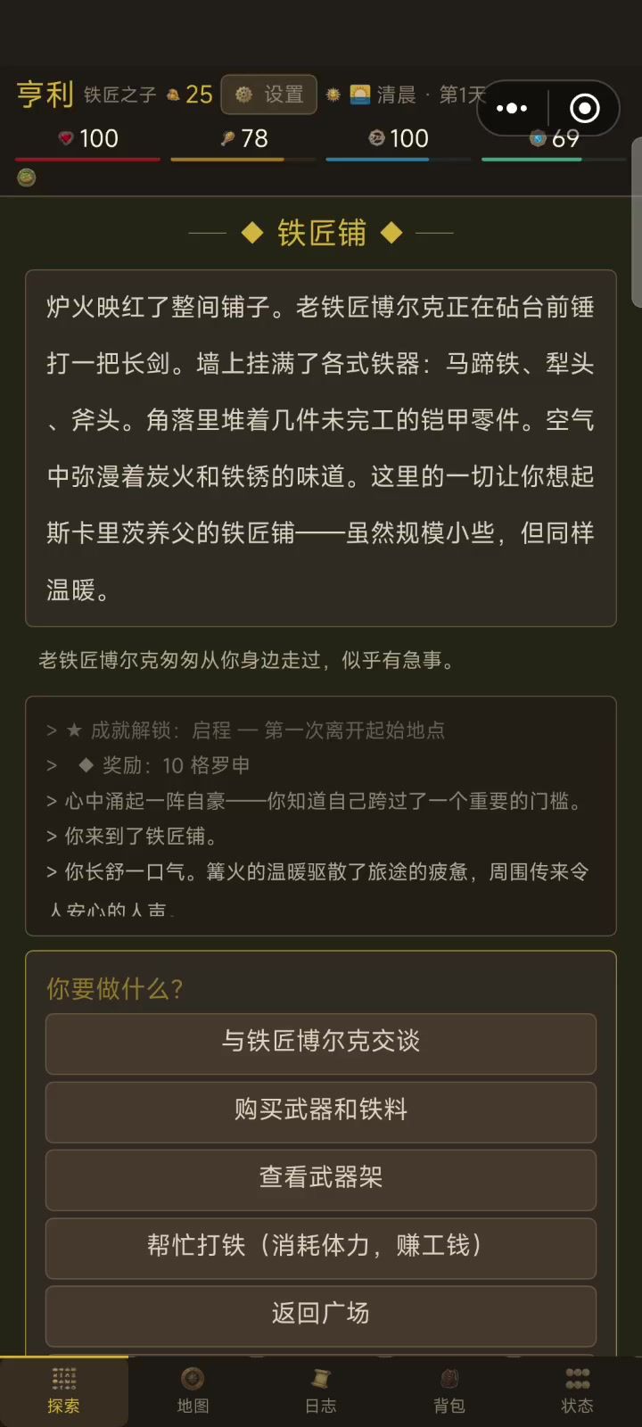 核心新系统 — 技能经验成长系统新增 :实现基于经验值的 20 级技能成长曲线支持技能检定(DC 难度等级)、成功率计算、经验奖励完整的存档导入/导出支持事件模块全面重构(6 个文件)社交/任务/生存/训练/战斗/探索事件统一难度等级机制,替换原来的硬编码数值判断各类活动现在给予对应技能经验奖励事件系统 UI 升级事件选项按钮显示格式化技能检定信息,如 [口才检定 DC8 - 中