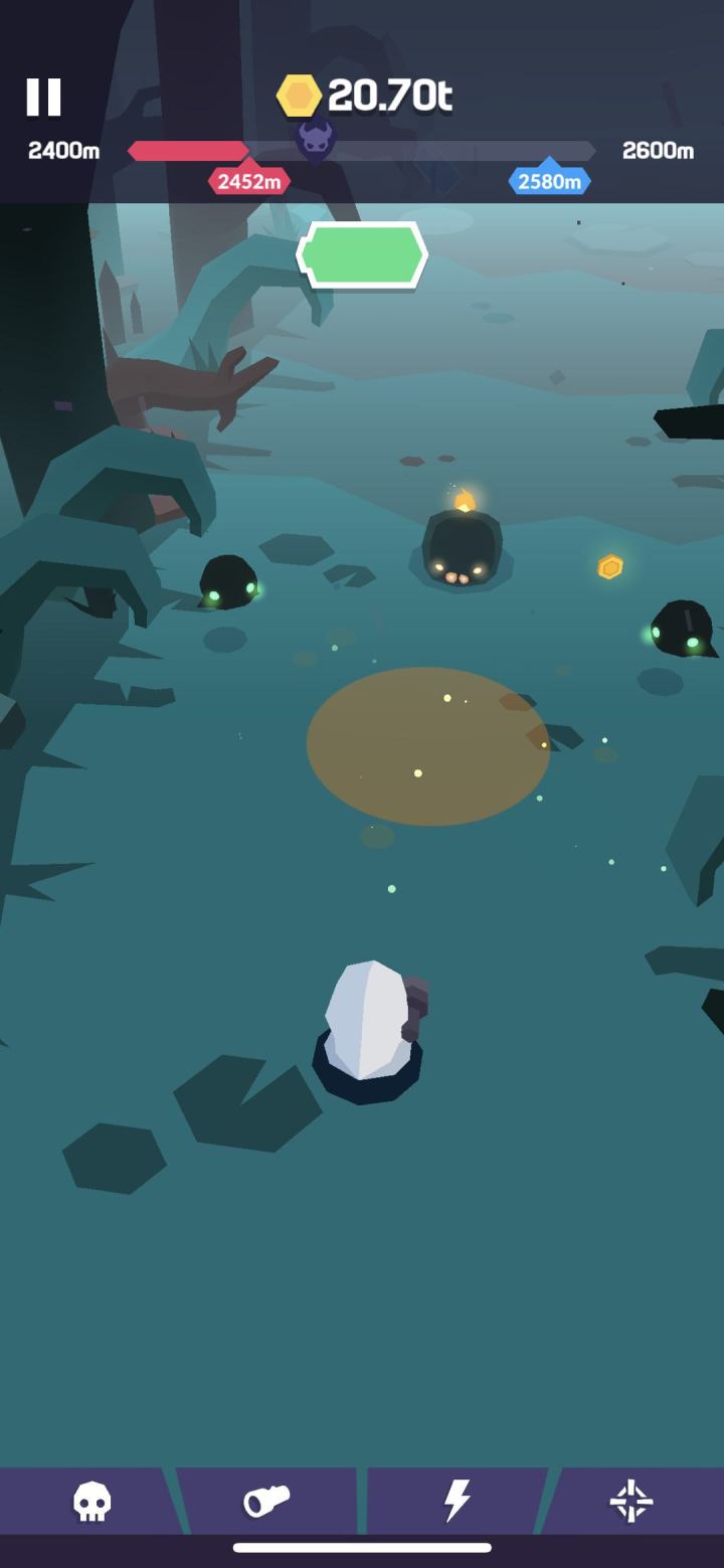 为什么说这款萌萌哒的Ghost Pop!(幽灵现行!)是一款看脸的数值休闲游戏呢?这就要从他的玩法、关卡上剖析了:1、玩法简单,控制手电筒照射并消灭幽灵即可继续前行;2、每100m遭遇小BOSS,每200m遭遇关卡BOSS,每200m为一次Checkpoint(用于记录);3、每通过200m解锁1次新人物以及新手电筒(共21个人物,4000m解锁最后一个人物);4、前进过程中收集金币(个人