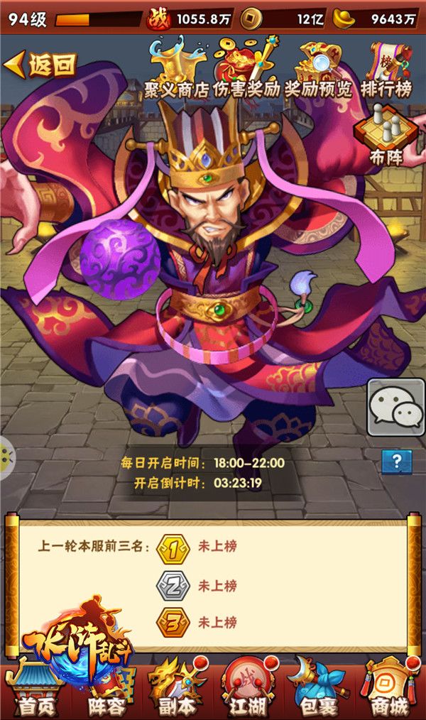 英雄齐聚,一起铲除世界BOSS!全新水浒题材策略回合卡牌手游《水浒乱斗》首发开放了富有挑战性且奖励十分丰厚的世界BOSS玩法“英雄聚义”,玩法50级后解锁,每天晚上18点整后开放挑战,一起击败BOSS“高俅”,维护你心目中的水浒江湖吧。既然是世界BOSS,实力自然不凡,建议各位玩家挑战前,先好好整理下自己的武将阵容,该升级的升级下,该强化的强化下,把战力提高到你所能到达的极限再去挑战,不然只会白