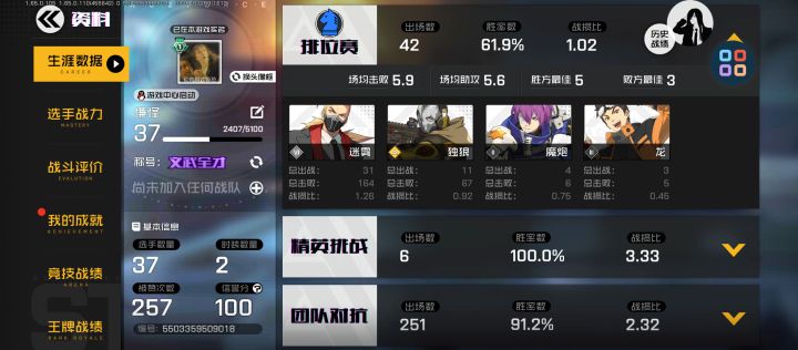 我的段位就只有到骑士阶段,往上面打打不上去了,往上面打就会被摩擦,但是娱乐局的话应该可以随便玩。主要玩的就是劳伦斯和独狼,还有其他几个游击,狙击的话勉强会一点老兵,其他的话都不太行,压制里面还练了一个喷火的那个忘记叫什么名字。其他英雄就不玩了,有没有有意向的小姐姐要一起玩的?有的话加我好友,名字慊怿,备注一下tap或者直接私聊我我加你也可#游戏安利#游戏讨论