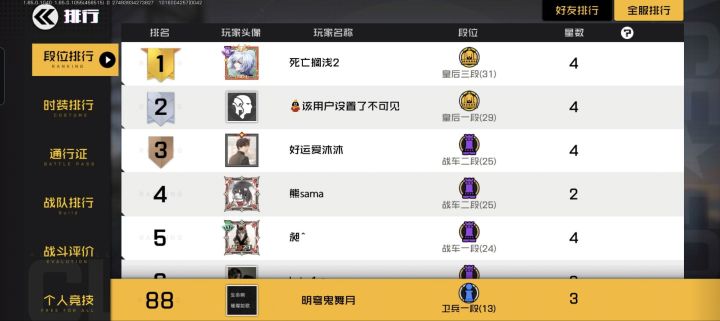 我的段位就只有到骑士阶段,往上面打打不上去了,往上面打就会被摩擦,但是娱乐局的话应该可以随便玩。主要玩的就是劳伦斯和独狼,还有其他几个游击,狙击的话勉强会一点老兵,其他的话都不太行,压制里面还练了一个喷火的那个忘记叫什么名字。其他英雄就不玩了,有没有有意向的小姐姐要一起玩的?有的话加我好友,名字慊怿,备注一下tap或者直接私聊我我加你也可#游戏安利#游戏讨论