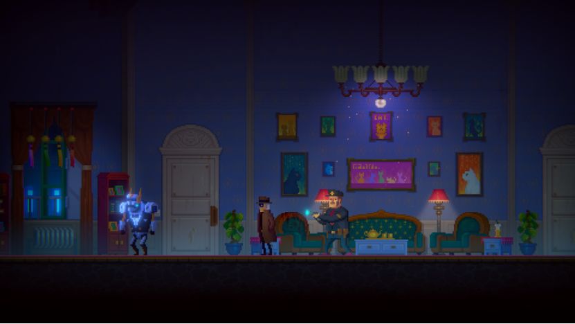 佩里夫人?后巷命案! 时间:2140年10月20日,星期四,中午 我们在这里遇见了白猫伊丽莎白和威廉,伊丽莎白身上有不寻常的血迹,我们往右调查垃圾堆。 发现佩里夫人的尸体,在报警之后,我们要调查现场。进入线索搜集与推理阶段,这也是本游戏中比较核心的玩法,通过调查每一个细节,获取几个关键线索,拼凑线索还原犯罪过程。 主角有两种视觉模式:1.普通视野;2.侦探视野。首先要在普通视野中调查下图3个位置,