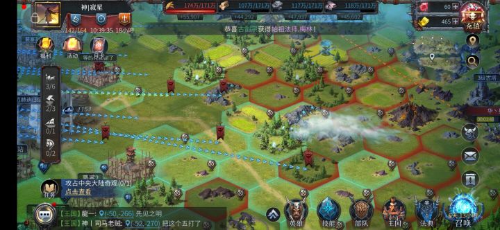 一个卡美洛特的叛徒牧羽,引狼入室,狐假虎威,谋权篡位,真是龌龊至极,至此,卡美洛特“东方红”王国愿与“众神联盟”达成友好联盟协议,共同抗击威胁残害各个崇尚和平大陆的敌人,为了缓解盟友的压力,“众神联盟”调动部队拿下黑沙海岸等港口,打通了不死域与黄金沙海的航路,8月19号晚上增派主力一团与其他未编组王国成员部队千里奔袭黄金沙海,但由于路途遥远,太过深入,遭到“一世欢喜”部队势力猛烈阻击,众神联盟由因此决定稳打稳扎,在黄金沙海的迈赫迪3级遗迹构建前沿阵地向前“一世欢喜”大本营突进,施压绞杀“一世欢喜”势力。