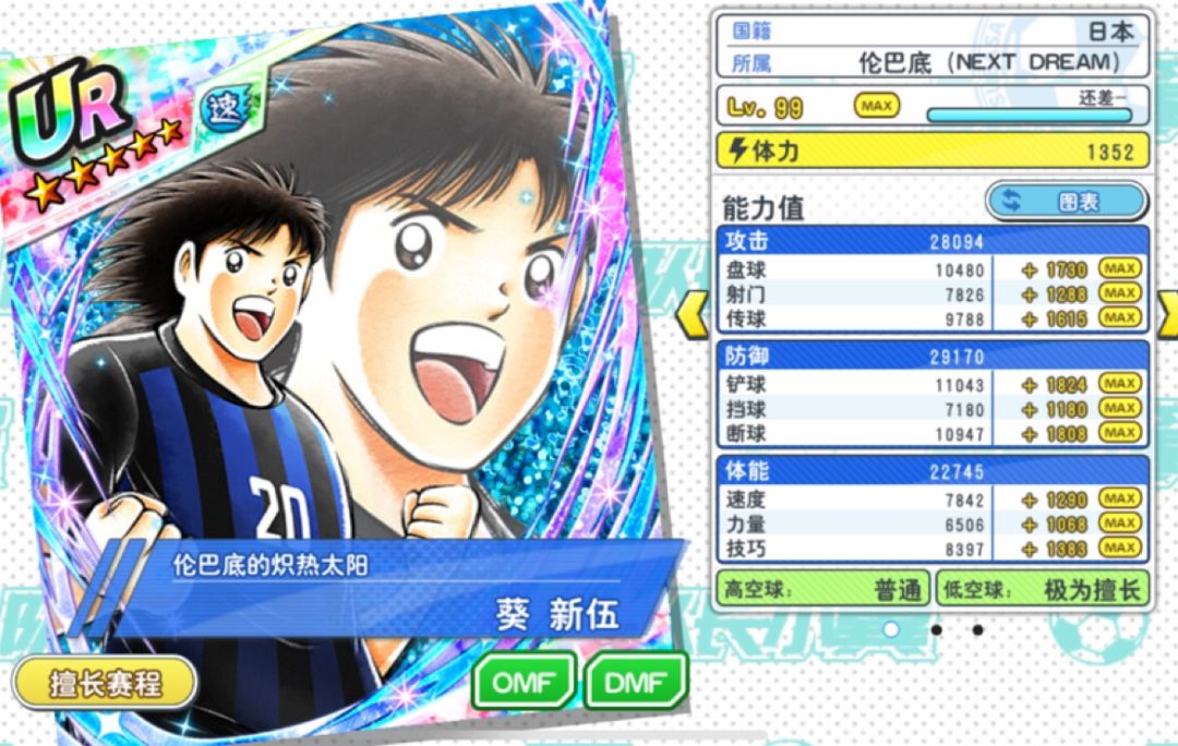 【球员介绍 — 大空翼】 1.「球员基本数值」 2.「球员能力综合评价」 综合实力S 抽卡指数S+主要能力: 机会制造者、单人进攻大师10%同时减耗30%、强制单挑-每半场2次、盘球5倍、防2封。 亮点: 强制单挑很犀利,不用担心被围殴,而且对决耗体非常低,搭配5倍盘球,让他进攻的时候威胁非常大; 有条件给他喂520盘和490撞,突进有不错的强吃能力;顺带有机会制造者被动,不管是个人进攻还是给别人