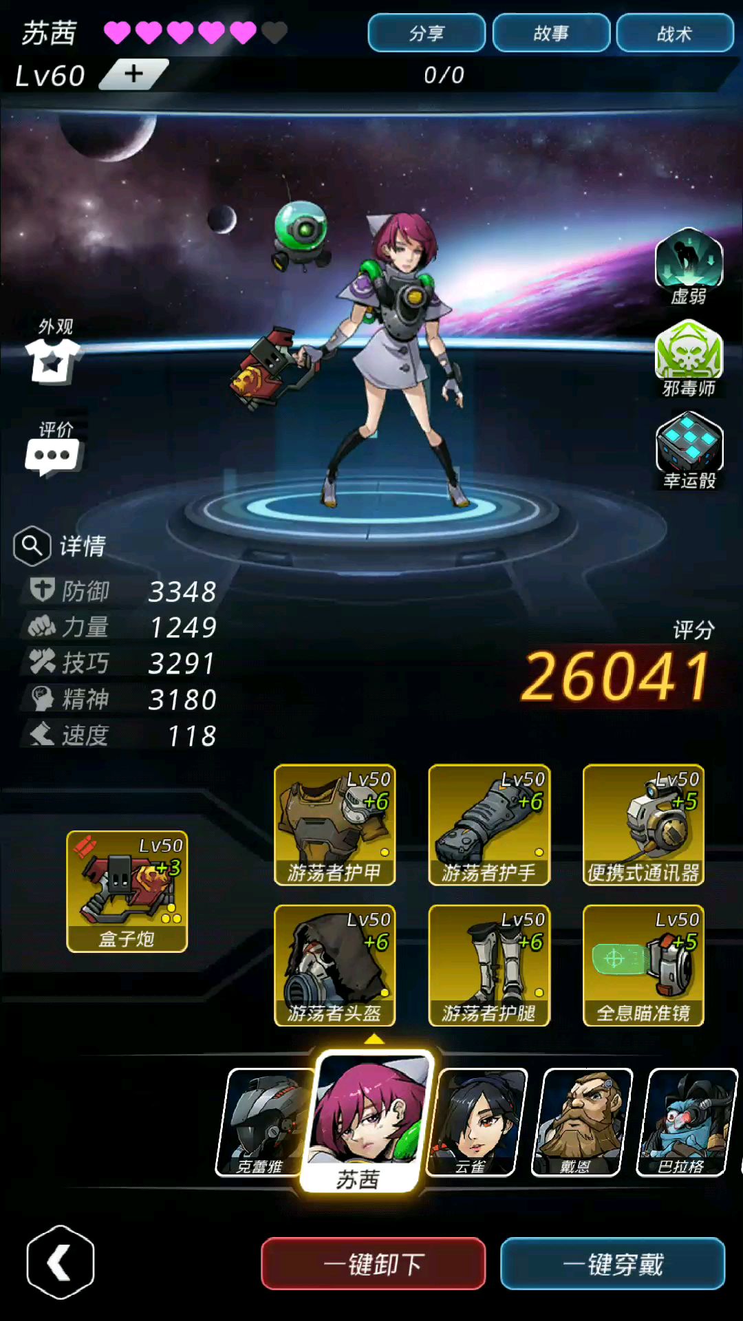 穿的是角斗士加10一套,动能抗性12,在天赋的减伤下依然抗不住70级云雀的摧残。但可以看到机器人极其抗,超级大肉肉