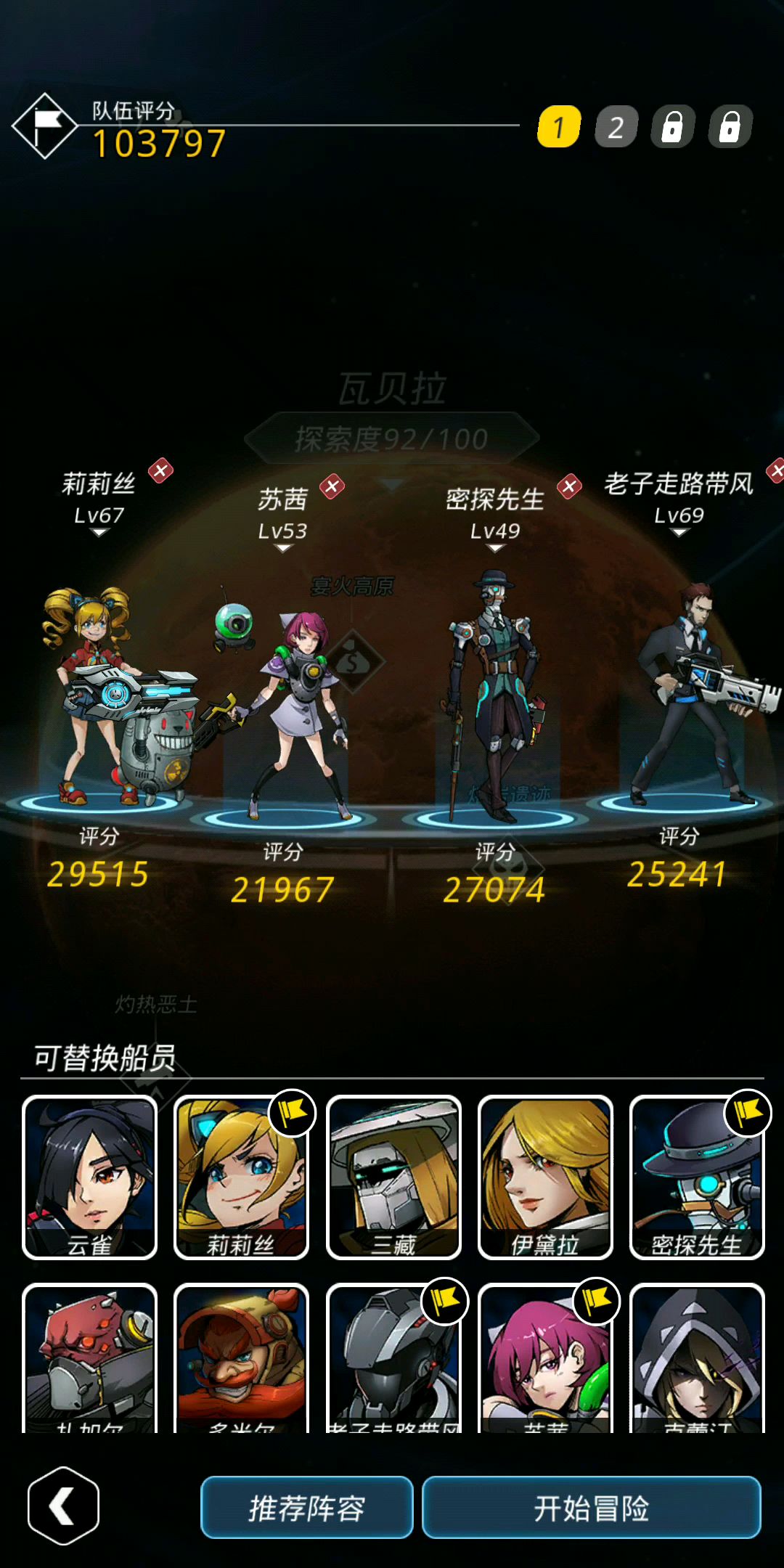 学习了论坛里的一些大佬攻略,分享一个阵容。人物:使徒毒苏西(多加精神,主战选手),游荡谢老(保证命中,没氪,用的治疗的游荡,模块都没换…),天启永动机,圣骑士主角(防贯穿,没有也可以带222,多补几个50%防贯穿词条,大刀配步枪的精英用)。