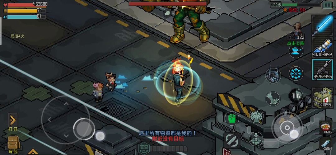 典型血牛boss,伤害手段有限。低难度可以机甲近身破盾。高难度近身破盾时需要注意boss的近身伤害,时刻保持护盾黄条的存在,否则一旦受击基本上直接被秒。