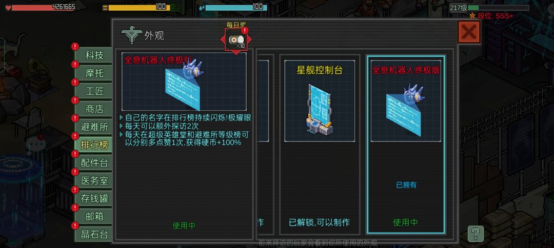 深渊200层每日快速获得物资: … … … … … 噩梦深渊110 层每日快速获得物资: 两个深渊获得的配件箱,相当于一个金色配件箱。 手枪步枪子弹各3千发, 盐400包, 药品200多个, 其他物资若干。 后期升级避难所的材料大部分来自深渊,除了电子元件基本不会缺的。 同时深渊打高层很简单,基本上除了楼梯那关,其他都是可以做到无伤通关,只是比较费弓箭和时间。 深渊打法过我几天会上传出来。