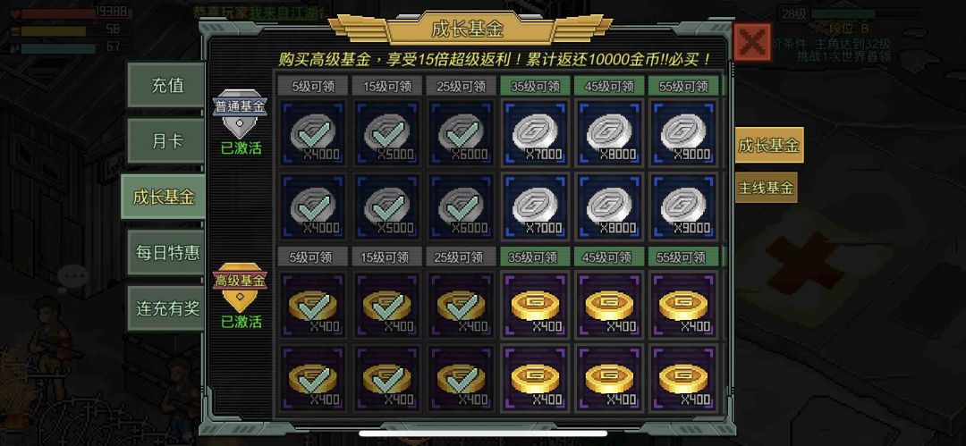 hello小伙伴们,今天为大家介绍《像素危城》的微氪攻略~在很多游戏中,其实微氪党都是占大多数,毕竟很多人就是为了休闲玩一下,不会充很多。那么微氪玩家如何才能够在《像素危城》中玩的快乐呢?一起来看看吧? 能白嫖的绝不放过 是的,对于微氪玩家来说,能够白嫖的奖励绝对是不容错过的。每日特惠礼包,营地的小电视,还有月卡奖励和连充奖励都可以白嫖硬币和资源(不用充可以直接领的) 性价比超高的月卡 不管啥游戏